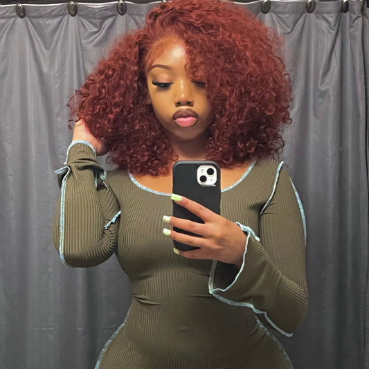 Sold outAUBURN #33 CURLY BOB LACE FRONT WIG